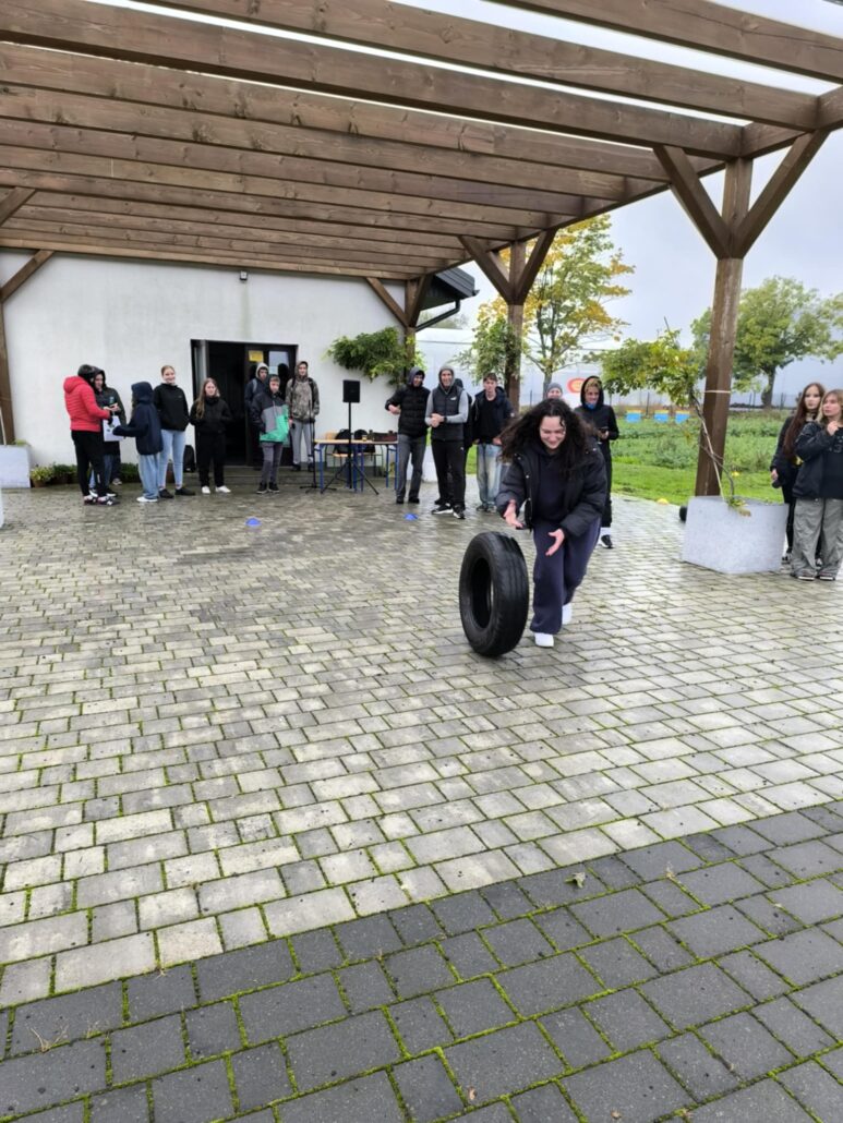 Po części pokazowej nadszedł czas na wspólną zabawę przy ognisku. Pieczone kiełbaski i ziemniaki smakowały wyśmienicie. Nie zabrakło także konkurencji sportowych i kreatywnych zabaw, które dostarczyły wielu emocji. Dużym zainteresowaniem cieszył się konkurs na największego ziemniaka – uczestnicy przynosili imponujące okazy, a rywalizacja przebiegała w duchu dobrej zabawy.