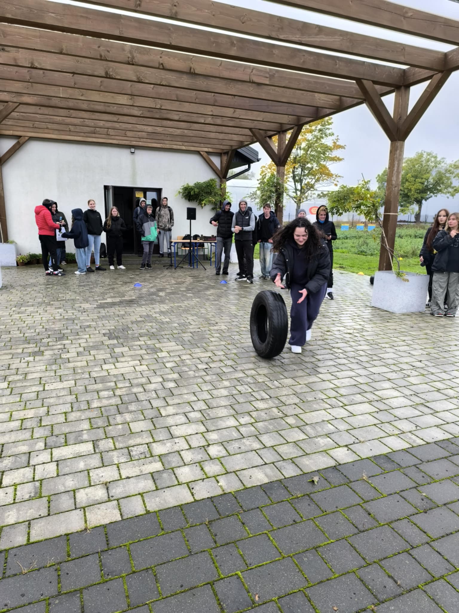 Uroczystość uświetniła oprawa muzyczna. Na akordeonie przygrywał pan prof. Szymon Mońka, wprowadzając wszystkich w doskonały nastrój. W rytm muzyki młodzież spontanicznie odtańczyła „Belgijkę”, pokazując, że dobra zabawa i wspólne świętowanie to najlepszy sposób na budowanie szkolnej wspólnoty.