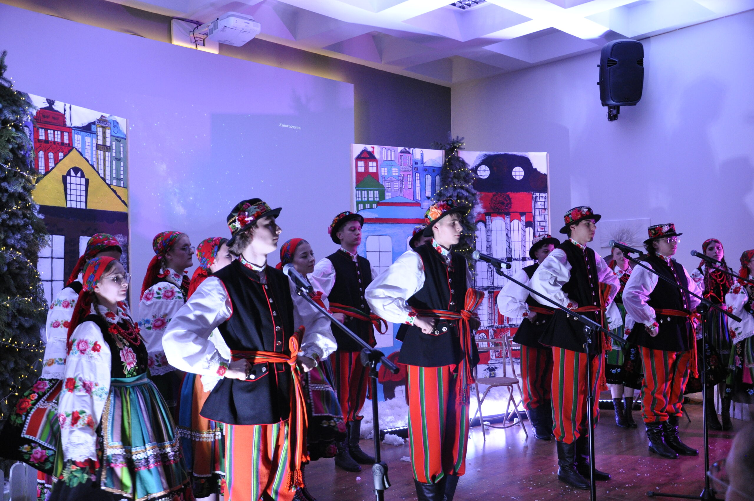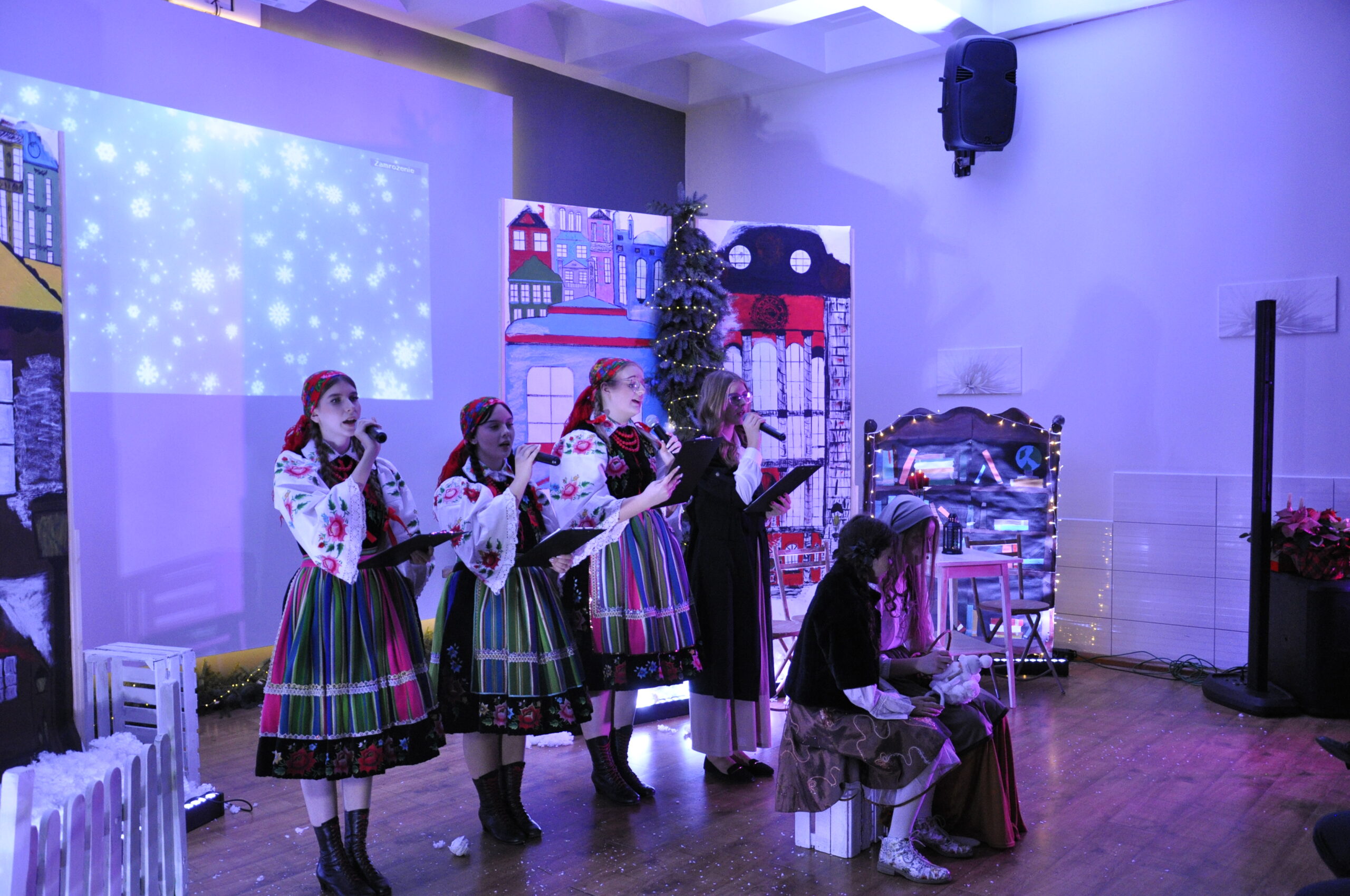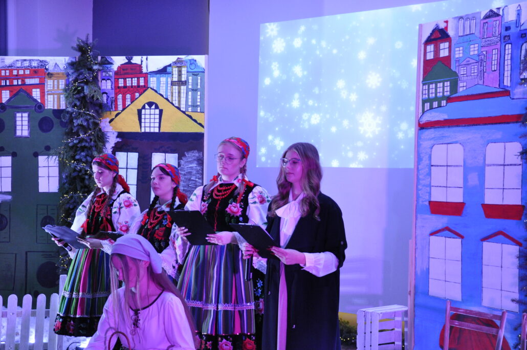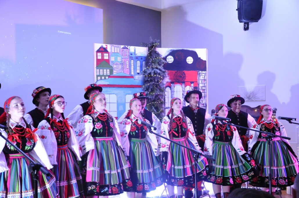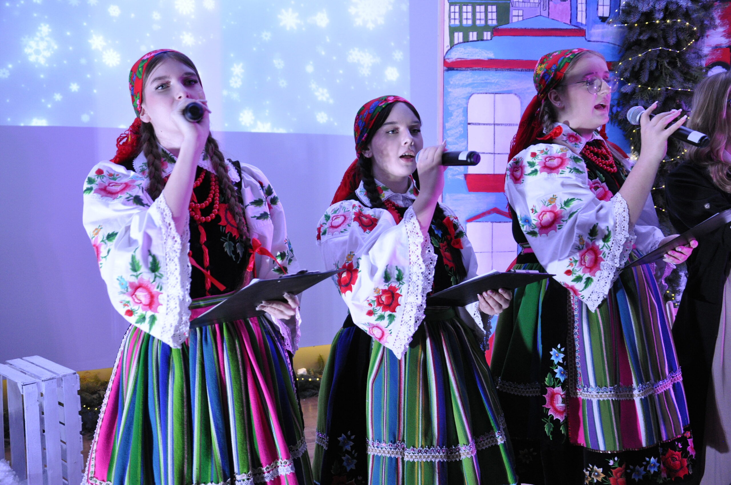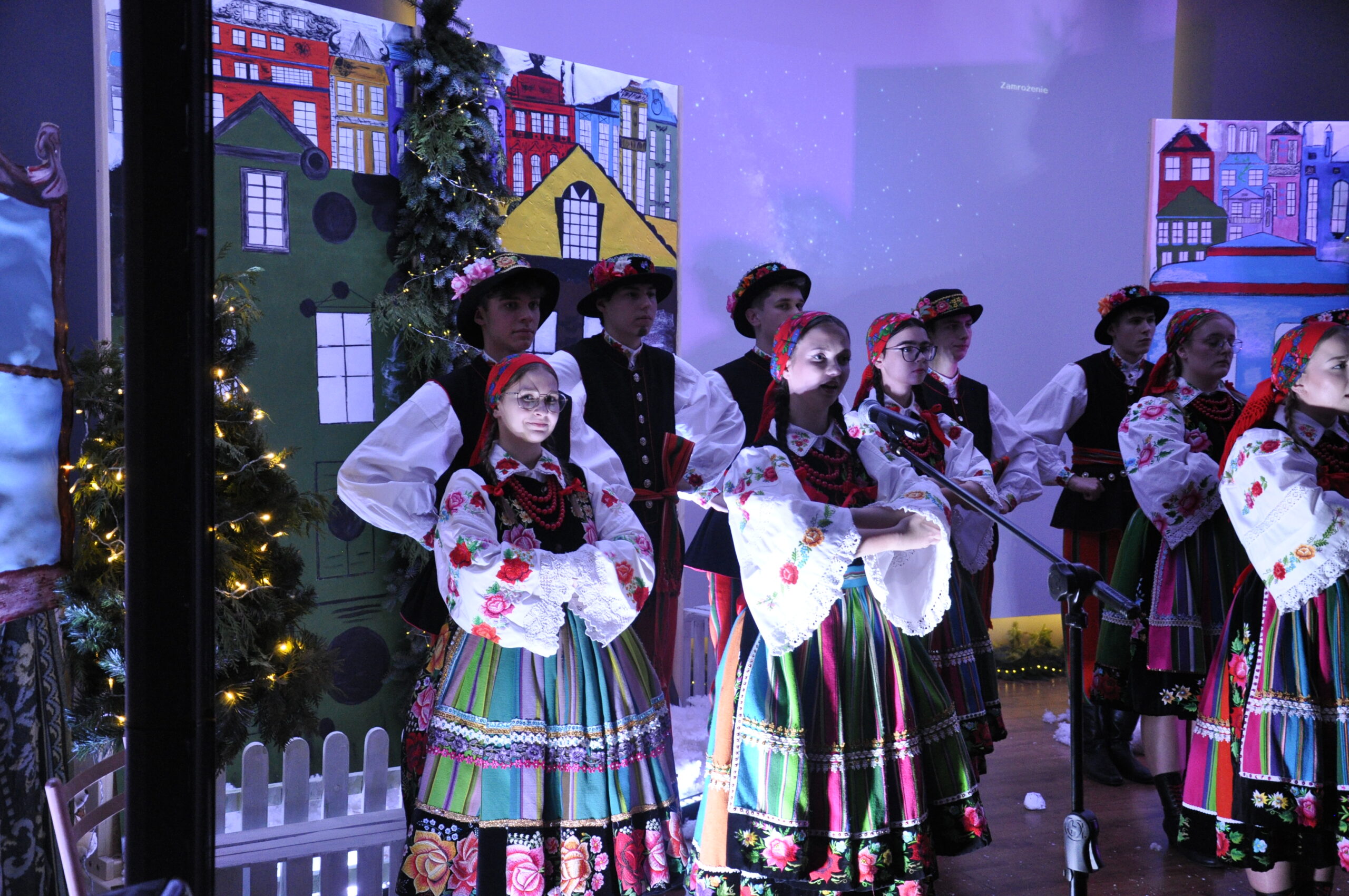 Po teatralnych emocjach na scenie zaprezentował się szkolny zespół ludowy „Dąbrowskie Pasiaki”, który wykonał tradycyjne polskie kolędy i pastorałki. Dźwięki znanych melodii wprowadziły wszystkich w prawdziwie świąteczny nastrój, przypominając o bogactwie polskiej tradycji.