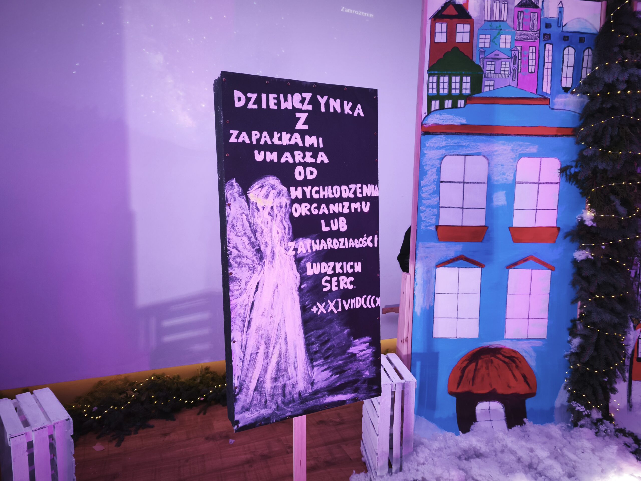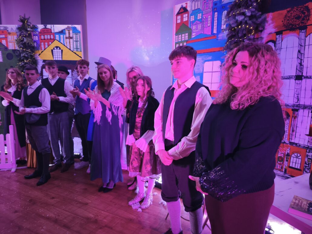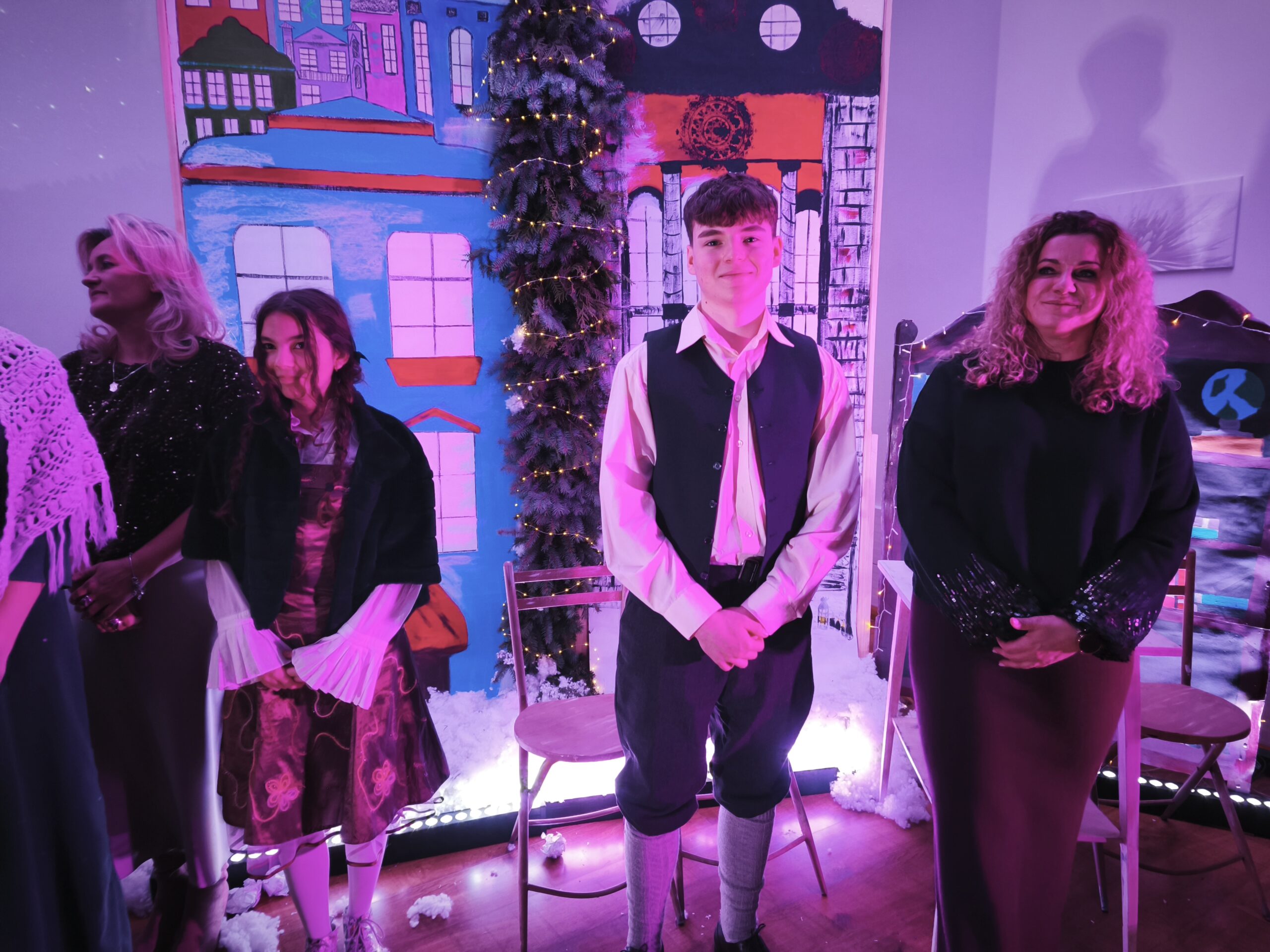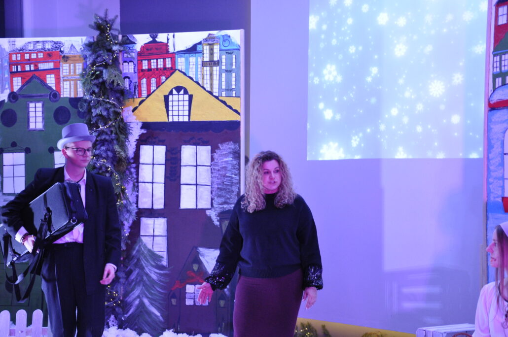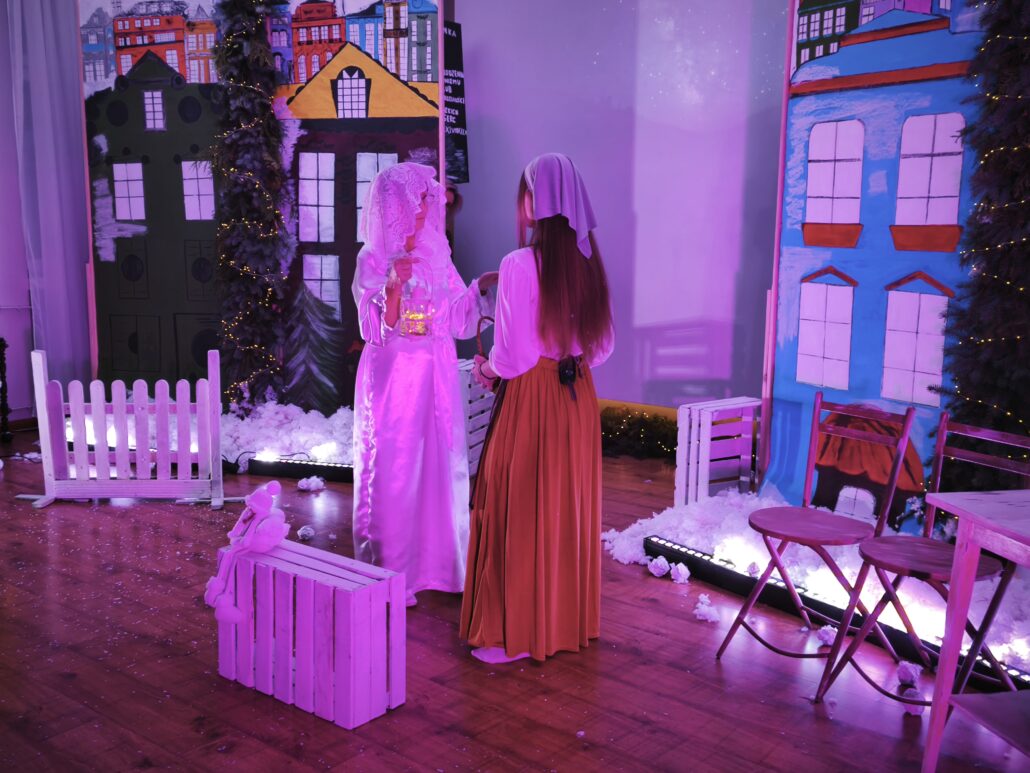 Centralnym punktem spotkania było niezwykle poruszające przedstawienie pt. „Dziewczynka z zapałkami”, przygotowane przez wychowanków oraz wychowawców internatu. Spektakl opowiadał historię dziewczynki z biednego domu, której losy poruszyły serca widzów. Przepiękna scenografia, starannie dobrane stroje oraz nastrojowa, wykonywana na żywo muzyka stworzyły wyjątkową atmosferę. Przedstawienie skłaniało do głębokiej refleksji nad losem osób potrzebujących, często niezauważanych w codziennym pośpiechu. Smutne zakończenie sprawiło, że w niejednych oczach pojawiły się łzy wzruszenia. Artyści zostali nagrodzeni owacjami na stojąco – najpiękniejszym wyrazem uznania.