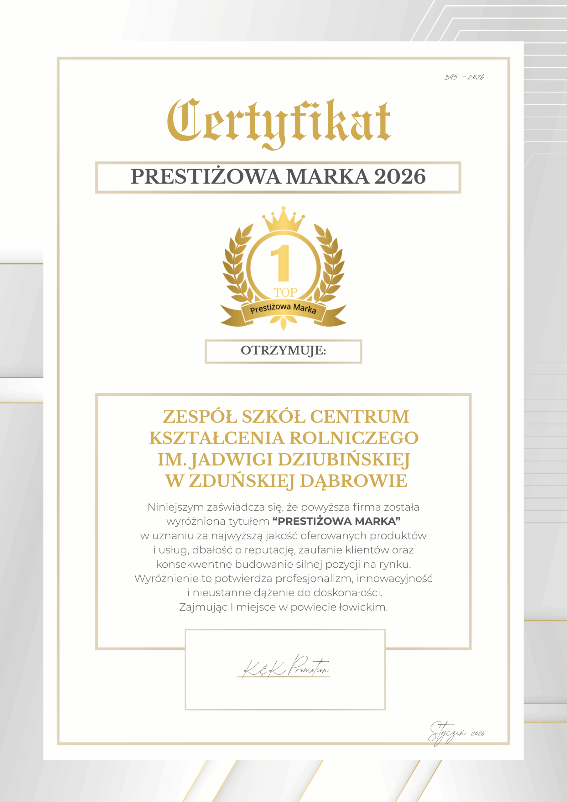 ZSCKR w Zduńskiej Dąbrowie z „Prestiżową marką” w plebiscycie Orły Edukacji.
