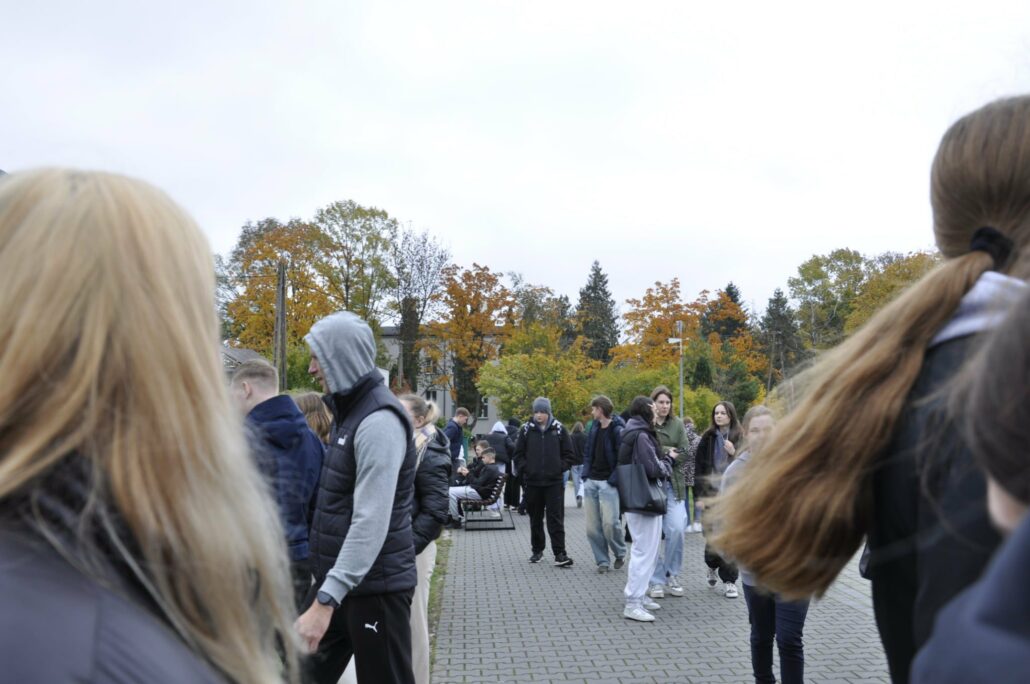 Uroczystość uświetniła oprawa muzyczna. Na akordeonie przygrywał pan prof. Szymon Mońka, wprowadzając wszystkich w doskonały nastrój. W rytm muzyki młodzież spontanicznie odtańczyła „Belgijkę”, pokazując, że dobra zabawa i wspólne świętowanie to najlepszy sposób na budowanie szkolnej wspólnoty.