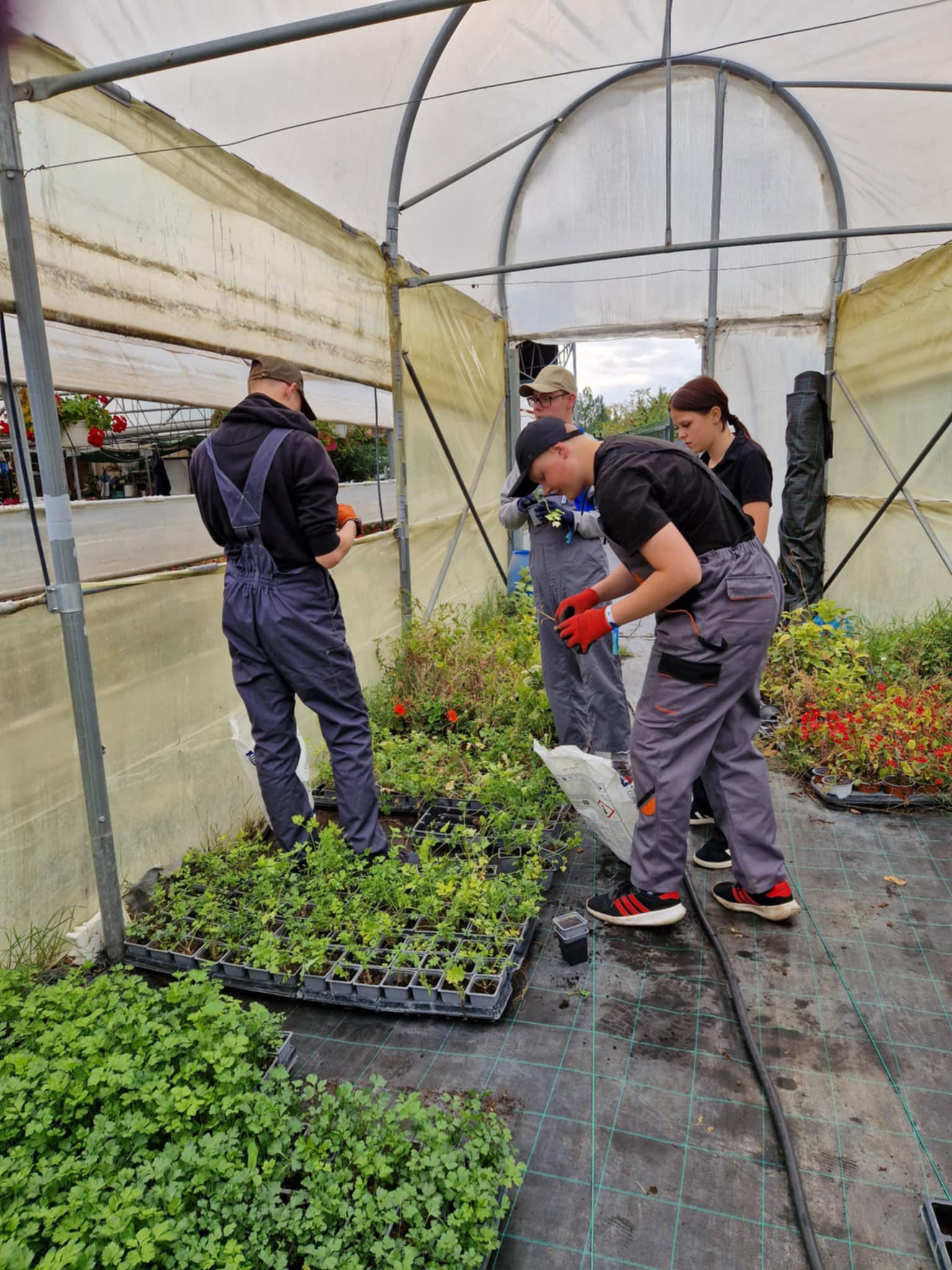 Po tygodniu pobytu w ramach programu Erasmus+, młodzież z Zespołu Centrum Kształcenia Rolniczego w Zduńskiej Dąbrowie ma już za sobą pierwsze doświadczenia zawodowe. Uczniowie kierunku architektury krajobrazu spędzili czas w szklarni, pielęgnując rośliny, porządkując tunele i układając kwiaty. Natomiast technicy hodowcy koni zajmowali się końmi w stajni, wykonując różnorodne zabiegi pielęgnacyjne, czyszcząc, szczotkując i dbając o wygodę zwierząt.