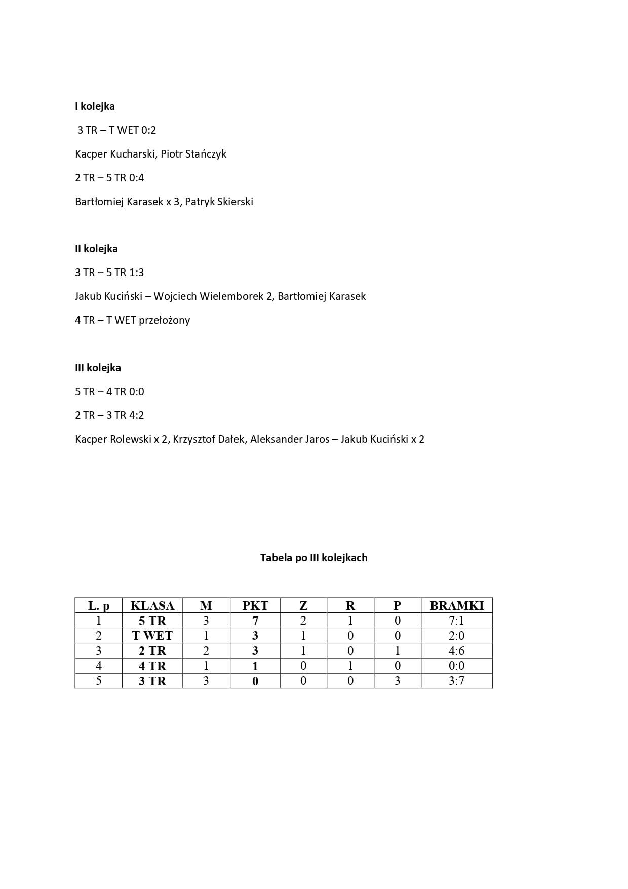 Po trzech kolejkach liderem tabeli jest klasa 5 TR, ale nie wszystkie drużyny rozegrały swoje mecze, więc wszystko jeszcze może się zmienić!