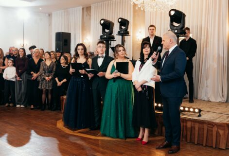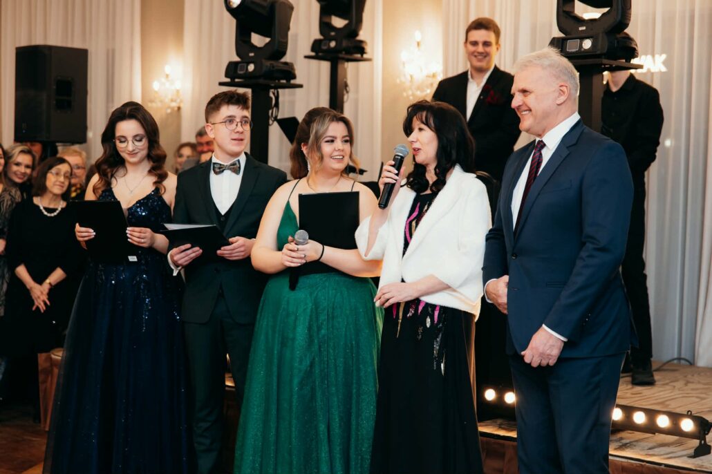 Następnie uczniowie trzech klas maturalnych zaprezentowali uroczystego poloneza do muzyki z filmu „Czas honoru”. Taniec, pełen dostojności, elegancji i symboliki przejścia w dorosłość, wzbudził ogromne uznanie i został nagrodzony gromkimi brawami.