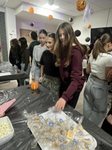 Wspólne wypiekanie okazało się nie tylko świetną zabawą, ale również doskonałą okazją do integracji. Dziewczęta, pracując razem, w naturalny sposób zacieśniały relacje i uczyły się współpracy. Podział obowiązków odbył się bardzo sprawnie – każda znalazła dla siebie zadanie, dzięki czemu wszystko przebiegało w doskonałej atmosferze i dobrym rytmie.