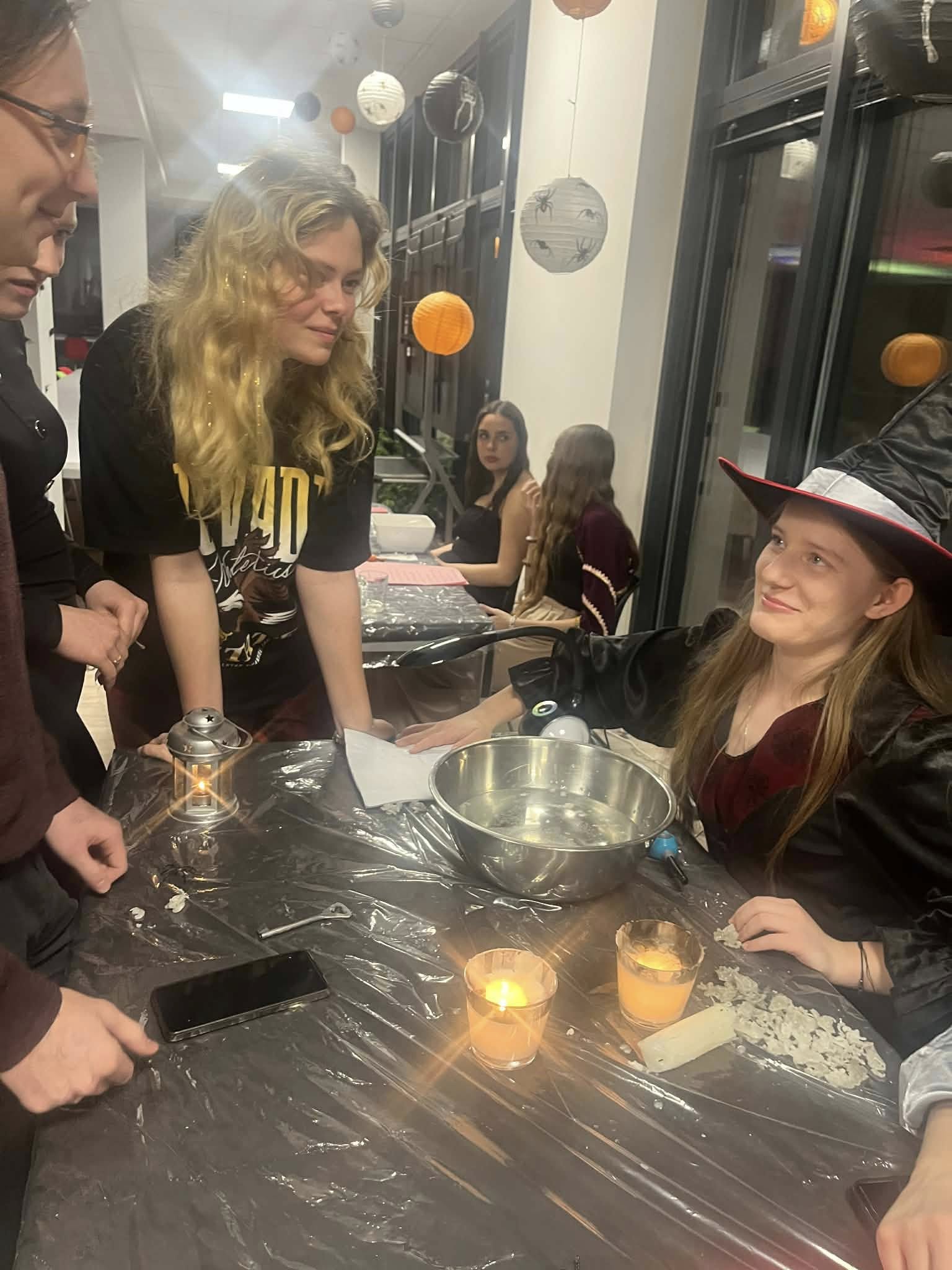 Wróżby cieszyły się ogromnym zainteresowaniem – przy każdym stanowisku panowała świetna atmosfera, pełna żartów, zaskoczeń i pozytywnej energii. W całym internacie unosił się gwar radości, a magiczny klimat sprawiał, że każdy mógł choć na chwilę poczuć się jak w świecie czarów.