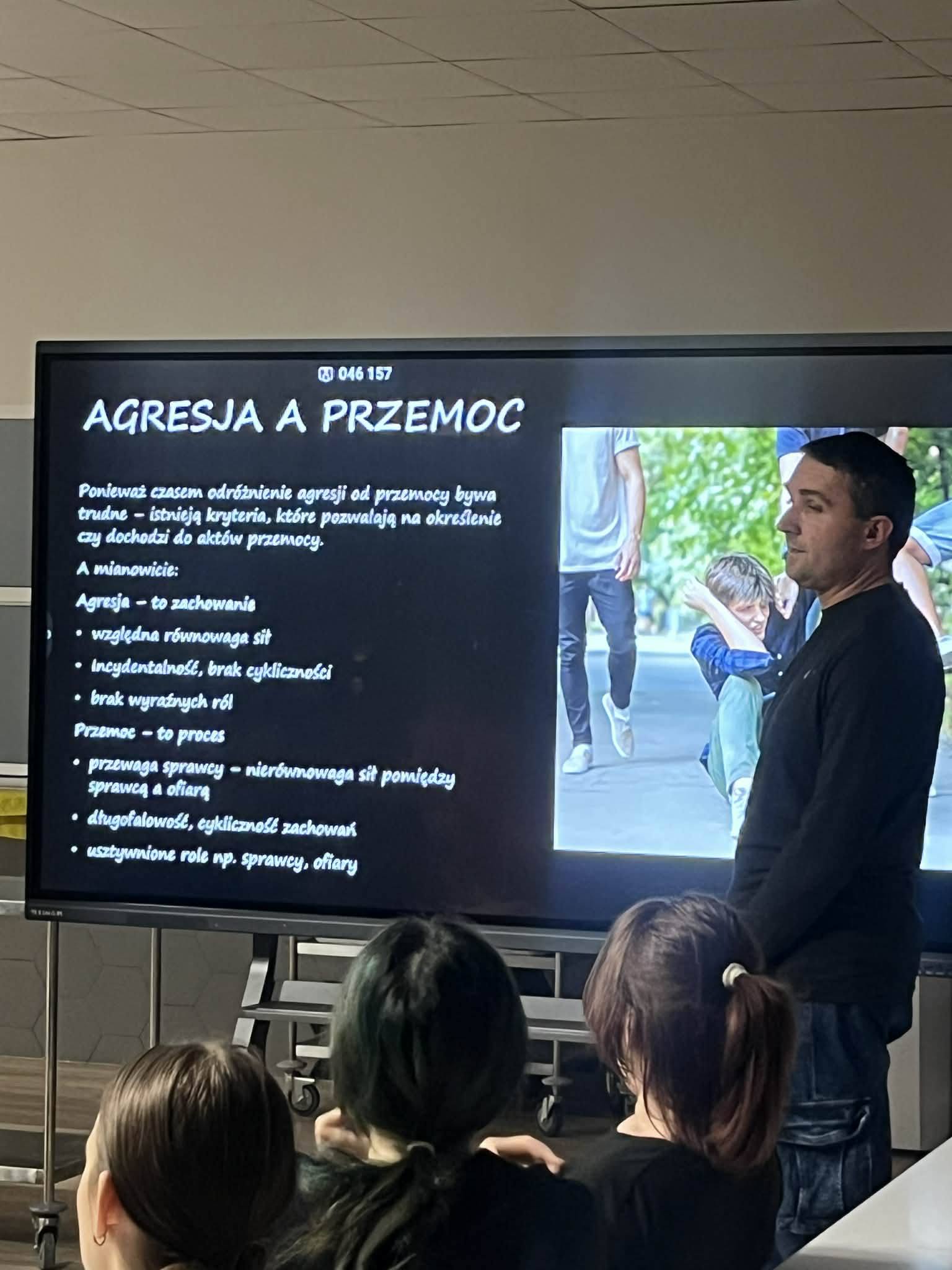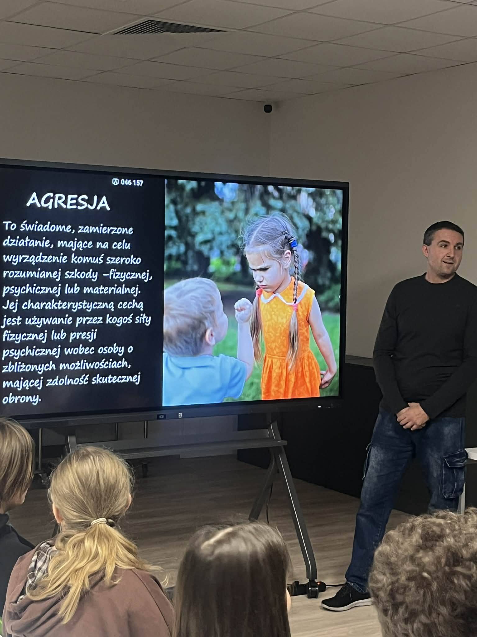 Podczas spotkania wychowankowie poznali rodzaje przemocy oraz dowiedzieli się, czym różni się agresja od przemocy. Obejrzeli film poruszający temat przemocy rówieśniczej, który stał się punktem wyjścia do rozmowy i refleksji. Następnie młodzież pracowała w grupach – jedna z nich określała cechy sprawcy, druga cechy ofiary, a także emocje, jakie towarzyszą obu stronom. Podczas spotkania uczniowie dowiedzieli się również jak reagować na przemoc oraz gdzie szukać pomocy, gdy sami lub ktoś z ich otoczenia jej doświadcza.