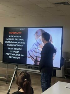 Na zakończenie zajęć młodzież sprawdziła swoją wiedzę rozwiązując test „prawda czy fałsz”. Podczas spotkania było dużo rozmów, zaangażowania i ważnych wniosków. Takie zajęcia uczą empatii, odpowiedzialności i pokazują, że na przemoc nie ma zgody, a reakcja ma znaczenie.