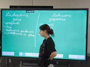 Zajęcia podzielone zostały na części teoretyczną oraz praktyczną. Wychowawca przedstawił młodzieży pojęcia uprzejmości oraz kulturalnego zachowania, wyjaśniając, w jakich sytuacjach umiejętności te będą szczególnie przydatne w życiu dorosłym. W trakcie spotkania wychowankowie obejrzeli również krótki film, z którego dowiedzieli się wielu ciekawych i inspirujących informacji związanych z omawianymi zagadnieniami. Część praktyczna opierała się głównie na odgrywaniu scenek sytuacyjnych przez młodzież. Taka forma pracy okazała się bardzo dobrym rozwiązaniem, ponieważ pozwala uczestnikom wcielić się w różne role, lepiej zrozumieć emocje innych osób oraz przećwiczyć właściwe reakcje w bezpiecznych, kontrolowanych warunkach.